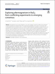 - Abstract: Altermagnetism has recently emerged as a new class of magnetic order that combines the advantages of both ferromagnets and antiferromagnets. The compensated antiparallel spin structure, in combination with crystallographic rotational symmetry, gives rise to distinct magnetic properties, opening new opportunities for next-generation spintronic applications. In this review, we introduce a variety of experimental approaches—including electronic, optical, and particle-based spectroscopies—used to probe theoretically suggested altermagnetism. In particular, we review recent studies on the altermagnetic candidate RuO2, whose magnetic ground state remains under debate with conflicting experimental results, organizing the discussion according to the experimental techniques. Furthermore, we highlight recent findings on fully strained RuO2 thin films that emphasize the critical role of strain in the emergence of altermagnetism. We believe that this review will provide not only practical guidelines for investigating altermagnetic systems but also valuable insights toward reaching consensus on the ongoing controversies surrounding RuO2’s altermagnetism. © The Author(s) 2026.