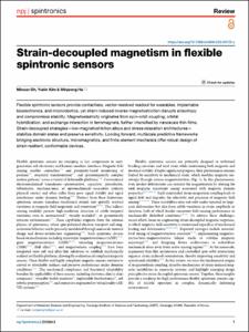 - Flexible spintronic sensors provide contactless, vector-resolved readout for wearables, implantable bioelectronics, and microrobotics, yet strain-induced inverse magnetostriction disrupts anisotropy and compromises stability. Magnetoelasticity originates from spin–orbit coupling, orbital hybridization, and exchange interaction in ferromagnets, further intensified by nanoscale thin-films. Strain-decoupled strategies—low-magnetostriction alloys and stress-relaxation architectures—stabilize domain states and preserve sensitivity. Looking forward, multiscale predictive frameworks bridging electronic structure, micromagnetics, and finite-element mechanics offer robust design of strain-resilient, conformable devices. © The Author(s) 2025.